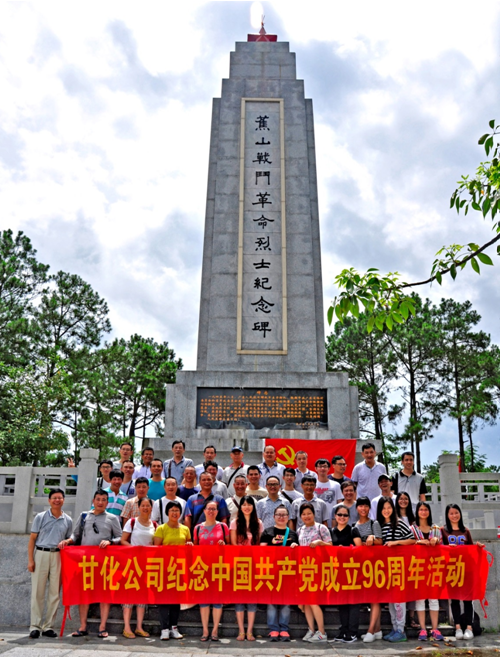 為紀(jì)念中國共產(chǎn)黨建黨96周年,并進(jìn)行愛國愛黨愛崗教育,2017年7月1日上午,甘化公司黨委組織本部和子公司全體黨員到新興蕉山革命烈士陵園,開展了“不忘初心,牢記宗旨”主題黨日活動,重溫入黨誓詞,以莊嚴(yán)神圣的方式慶祝黨的生日。