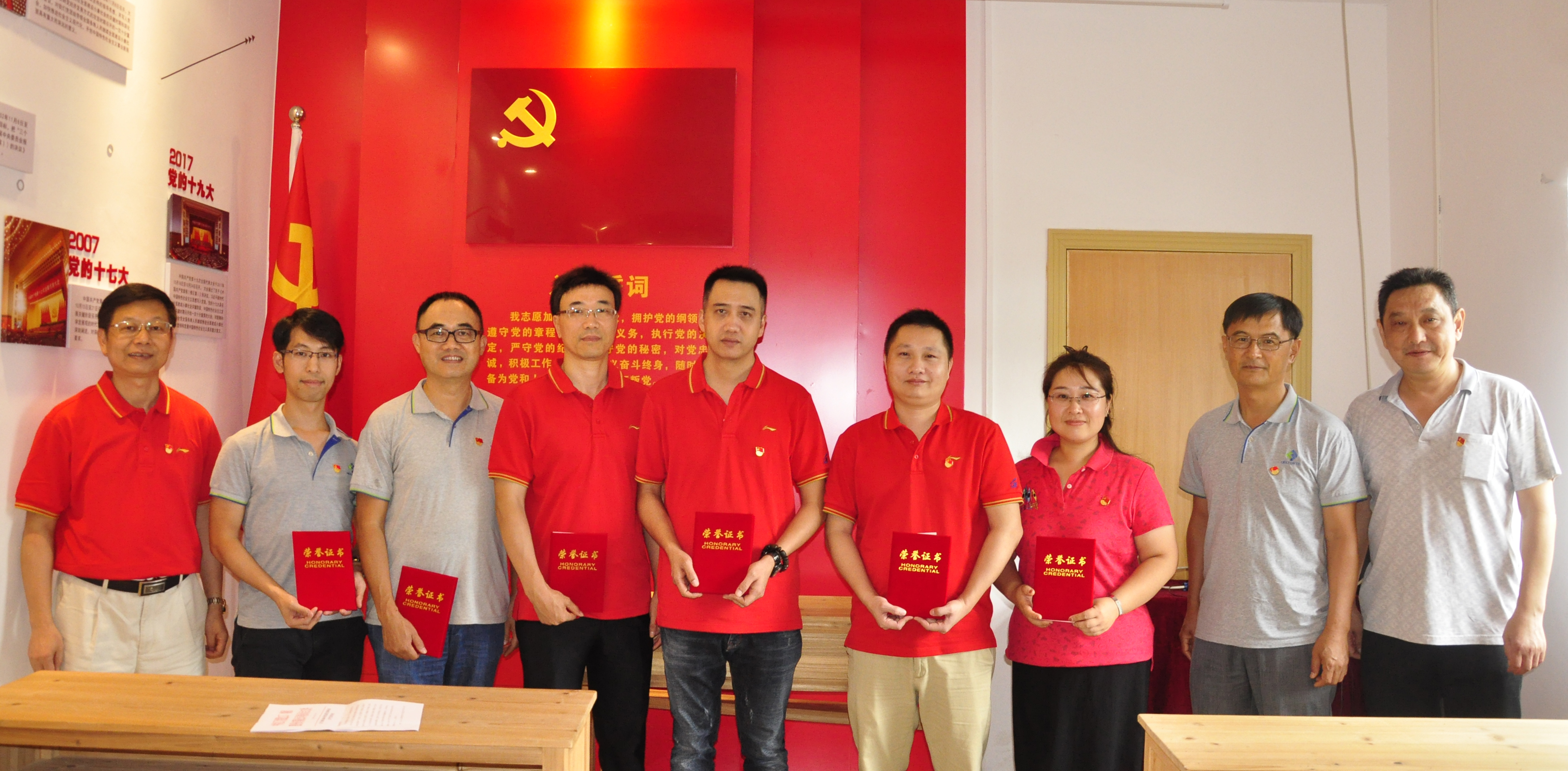 在二樓黨員學習室, 面向黨旗,黨員們莊重地舉起右拳,重溫入黨誓詞;公司黨委莊重地對獲得2019年度先進黨支部公司本部黨支部和李紹昌等6名先進黨員進行表彰;公司黨委書記方小潮簡述了先烈們當年可歌可泣的英勇事跡,指出公司黨委開展七一紀念活動,緬懷革命先烈,旨在激發(fā)黨員愛國愛黨愛崗的情懷,不忘初心,牢記使命,牢記職責,激勵黨員在各個崗位上發(fā)揮先鋒模范作用,為公司轉型發(fā)展多作貢獻。