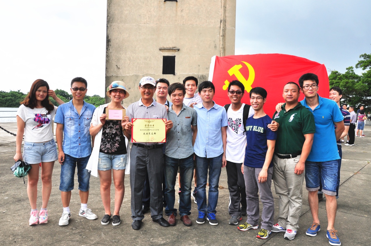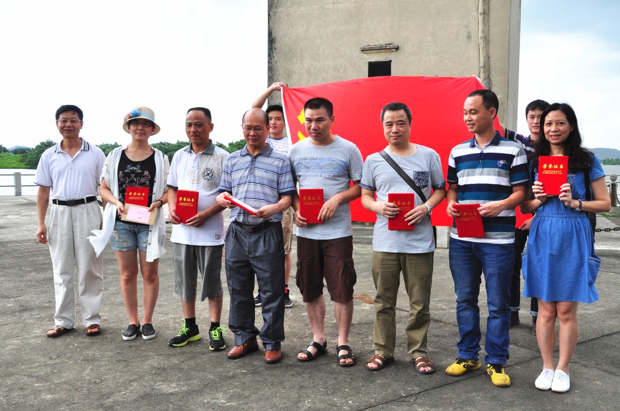 參觀當(dāng)天,艷陽(yáng)高照,在歡聲笑語(yǔ)的旅游車上,建黨紀(jì)念活動(dòng)首先在熱烈的黨史知識(shí)有獎(jiǎng)問答競(jìng)賽拉開了帷幕。當(dāng)答題告罄,獎(jiǎng)品紛紛易主時(shí),汽車就抵達(dá)開平南樓。該樓建于1921年,樓高七層19米,每層均有機(jī)槍和探照燈,是司徒氏人為防盜賊而建。抗戰(zhàn)時(shí)期,七名歸僑及僑屬青年曾在此堅(jiān)守八天九夜痛擊日軍,最后彈盡糧絕,壯士全部捐軀。七壯士雕塑雄壯威武,英靈如塔,藍(lán)天之下,民族精神直沖云霄。我們就在當(dāng)年這一浴血奮戰(zhàn)的所在默默地緬懷,莊重地對(duì)獲得2015年度先進(jìn)黨支部和優(yōu)秀黨員進(jìn)行表彰,展開鮮艷的黨旗合影……過程中,我們幾乎聽到烈士群像的呼吸。