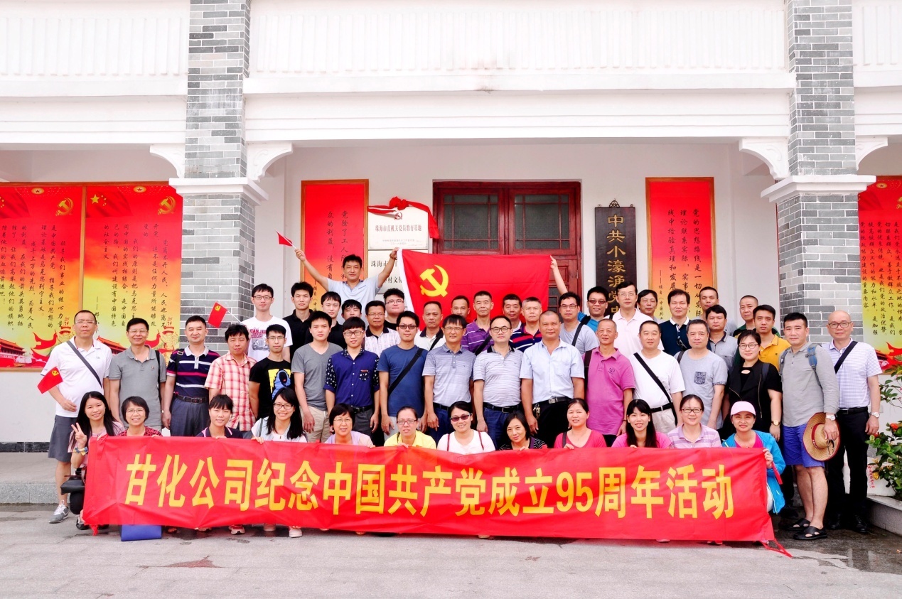 為紀(jì)念中國共產(chǎn)黨建黨95周年,并進(jìn)行愛國愛黨愛崗教育,2016年7月2日上午,甘化公司黨委組織本部和子公司全體黨員到珠海斗門小濠涌黨史教育基地參觀學(xué)習(xí),接受革命教育,重溫入黨誓詞,以莊嚴(yán)神圣的方式慶祝黨的生日。