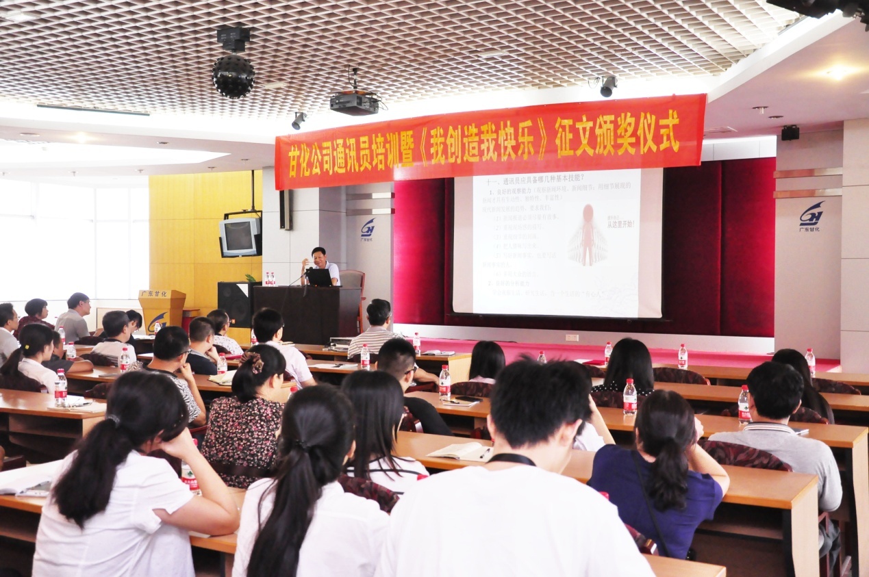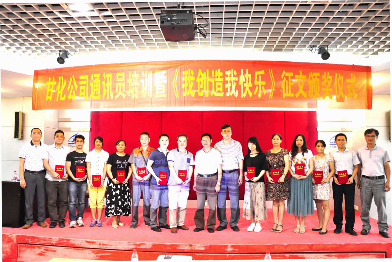 2016年8月25日下午,在甘化大廈17樓會(huì)議廳,公司黨委、工會(huì)舉辦通訊員培訓(xùn)暨《我創(chuàng)造,我快樂(lè)》獲獎(jiǎng)?wù)魑念C獎(jiǎng)儀式。培訓(xùn)由黨委書(shū)記、工會(huì)主席方小潮主講。公司黨委委員、各支部委員、工會(huì)委員和各單位通訊員等49人參加了會(huì)議。