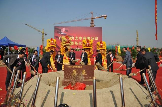 各位領(lǐng)導(dǎo)為廣東德力光電有限公司外延片、芯片生產(chǎn)項(xiàng)目共同奠基。