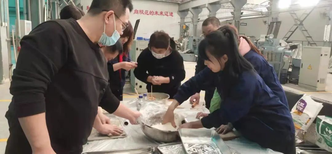 活動現(xiàn)場,所有員工熱情高漲,分別從家里帶來了電磁爐、煮鍋、面盆、搟面杖等廚房用具,并分頭提前采買了酸菜、豬肉、韭菜、雞蛋、茴香等等餡料。大家歡天喜地齊聚一堂,年會活動在馬震峰總經(jīng)理的新年致詞中拉開序幕。