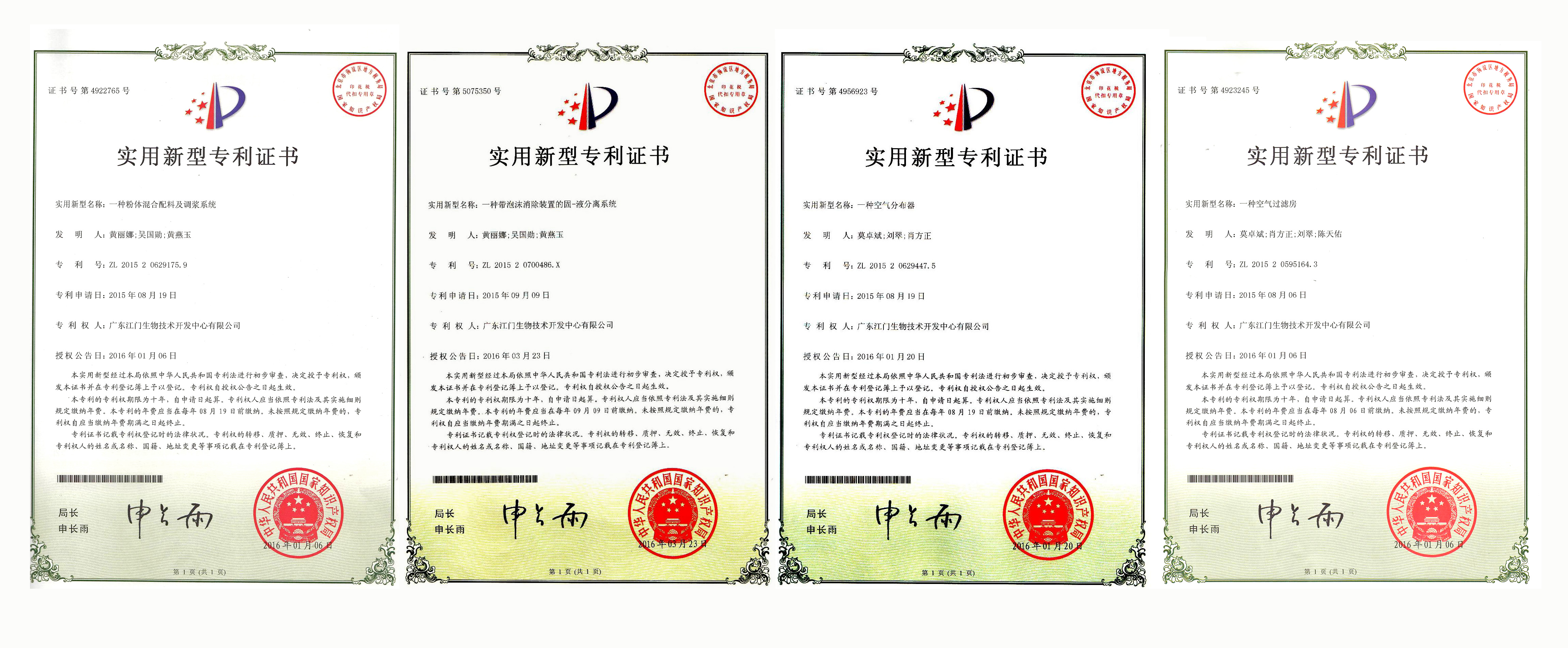 生物中心關(guān)鍵工藝設(shè)備取得4項(xiàng)實(shí)用新型專利證書